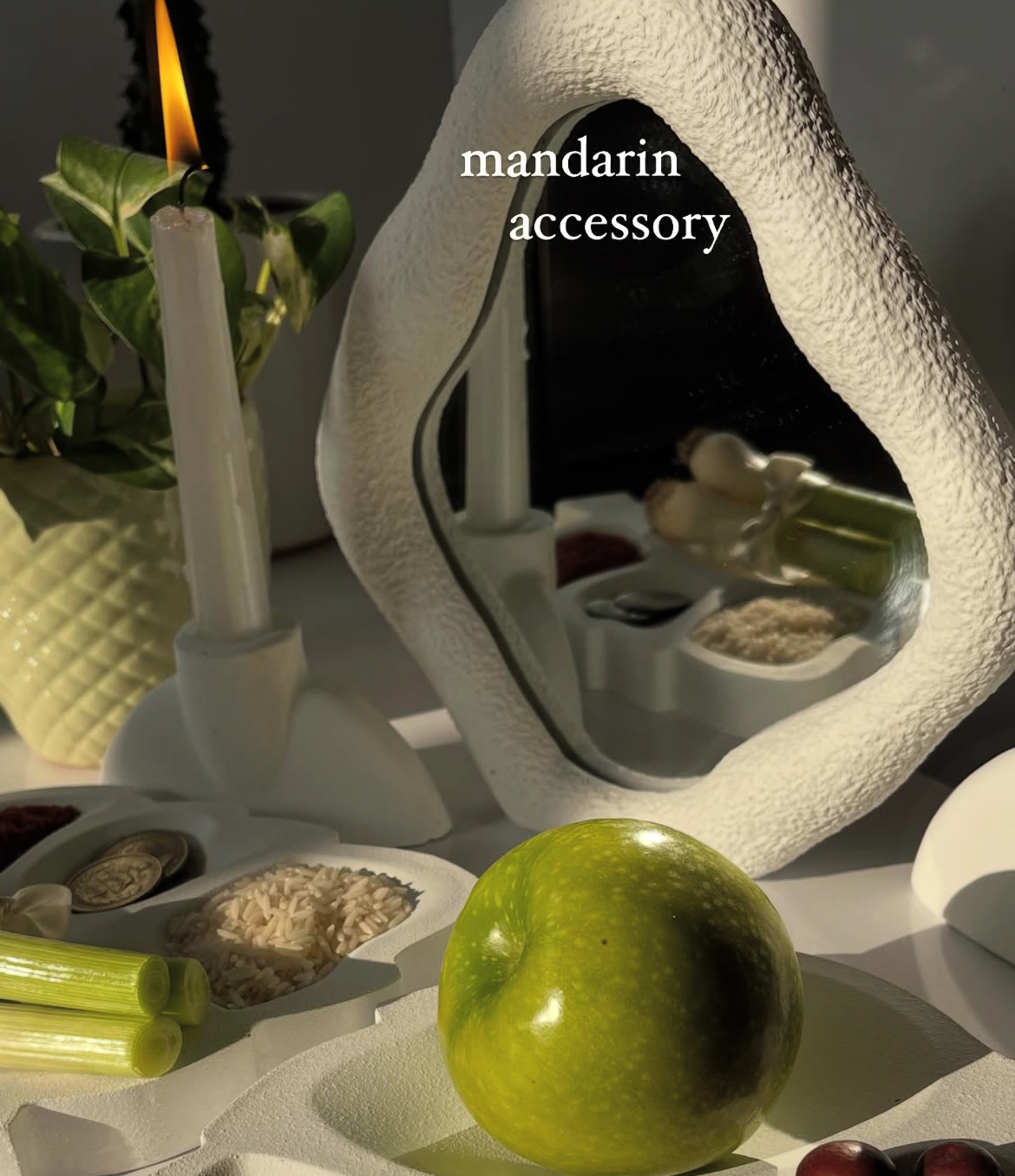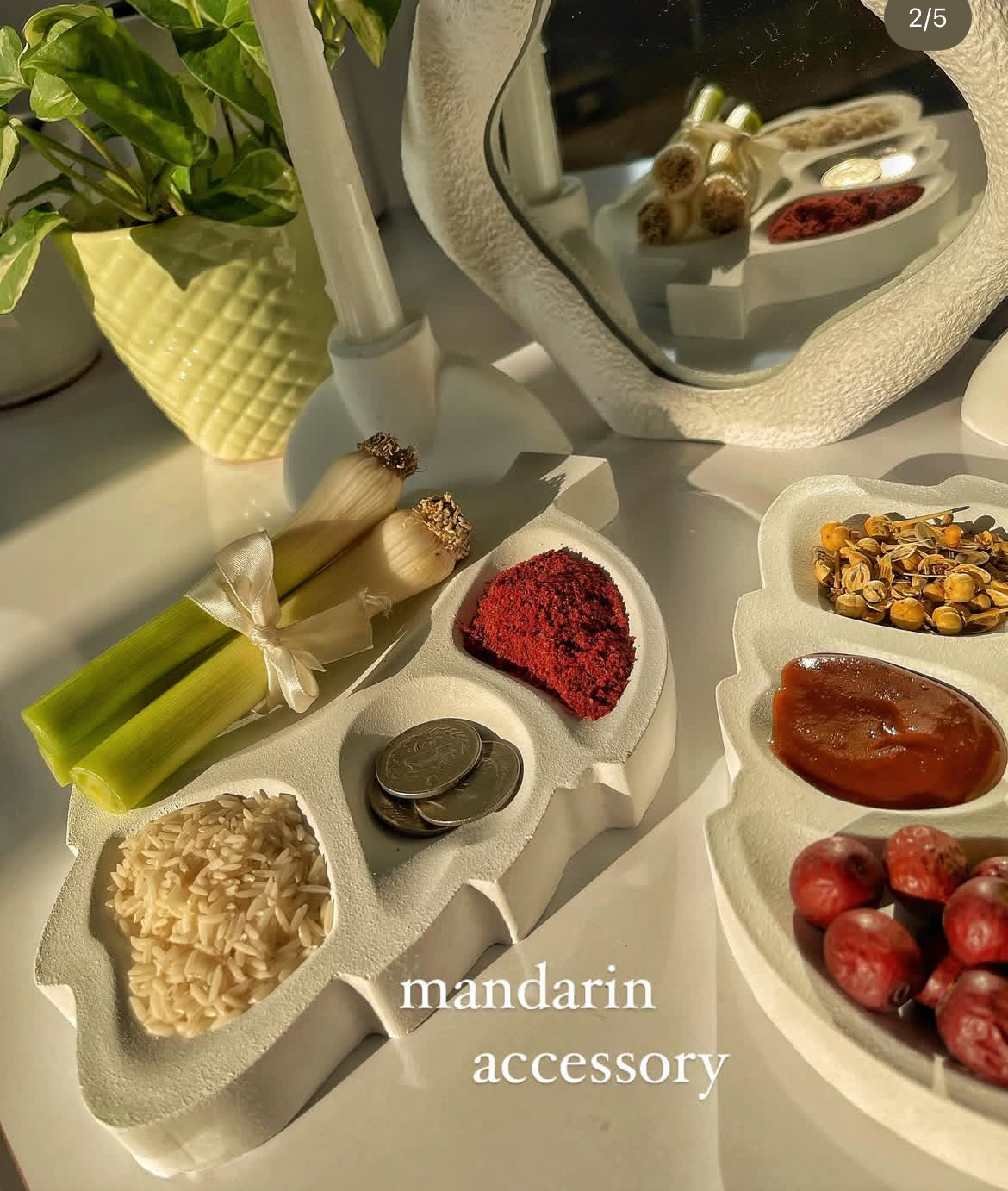 این هفت سین مینیمال زیبا شامل: یک عدد قاب آینه به همراه آینه👈۶۵۰ تومان دو عدد ظرف برگی سنگ مصنوعی👈هر کدام ۴۵۰ تومان در مجموع قیمت این ست ۱٫۵۵۰٫۰۰۰ تومان میباشد این ست فاقد شمعدان میباشد.