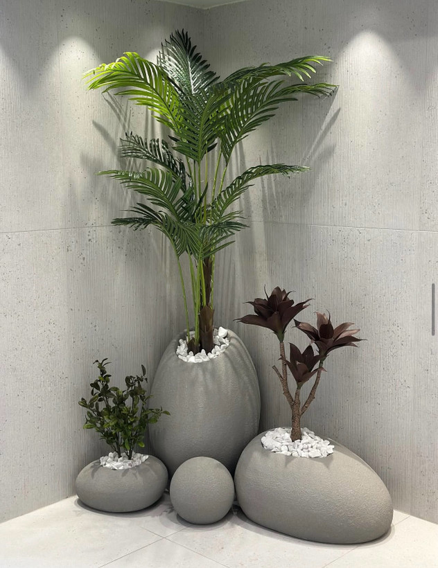 ✔️میتونید گلدان پلاستیکی را مستقیما داخلش بگذارید و روی گلدان را با خزه و سنگ تزئین کنید